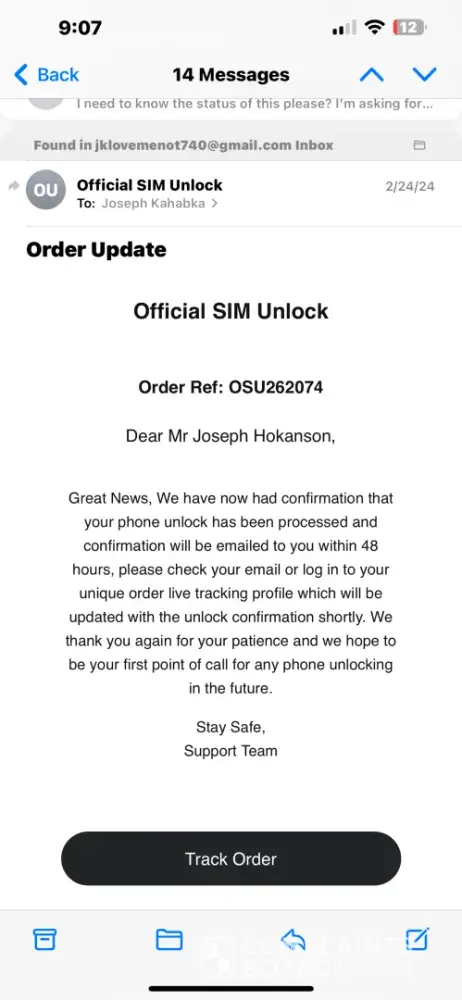 Disappointing Experience with Official SIM Unlock: Customer Warns to Avoid Them Altogether