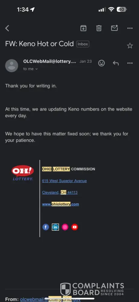 I’ve reached out to the Ohio lottery directly and this is the email I’ve gotten. (below)