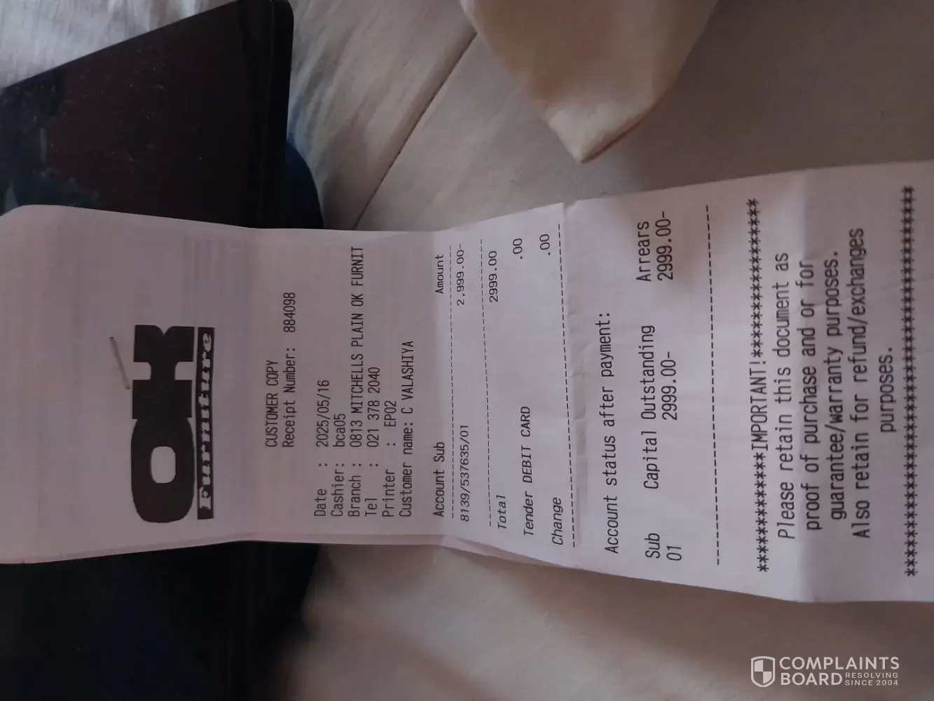I just want to know what kind of a business you are running in ok Furniture in Mitchell's plain I am DISGUSTED
