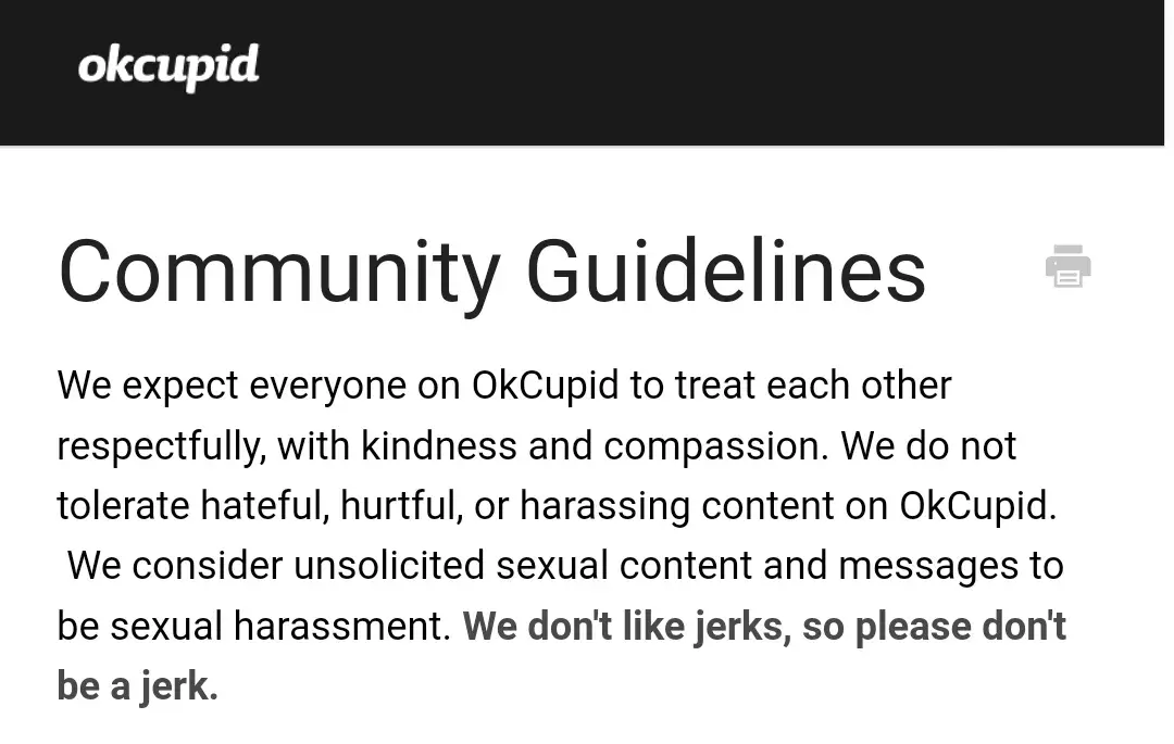 Ignores mental health issues. They are completely uneducated about mental health and they don't care. The irony is the administration is run by millenials which hypicritically repeat everything they shame their parent (ths boomers for). Being autistic I have never existed or mattered to anyone. I have just wanted a loving partner and never found that. Don't let degrees fool you, many people still get away with cheating, my generation is a perfect example of that. Seeing that I was banned just makes me wish I were dead. Okcupid doesn't care! Below they indurectly call me an outsided insulting me and calling me a jerk!