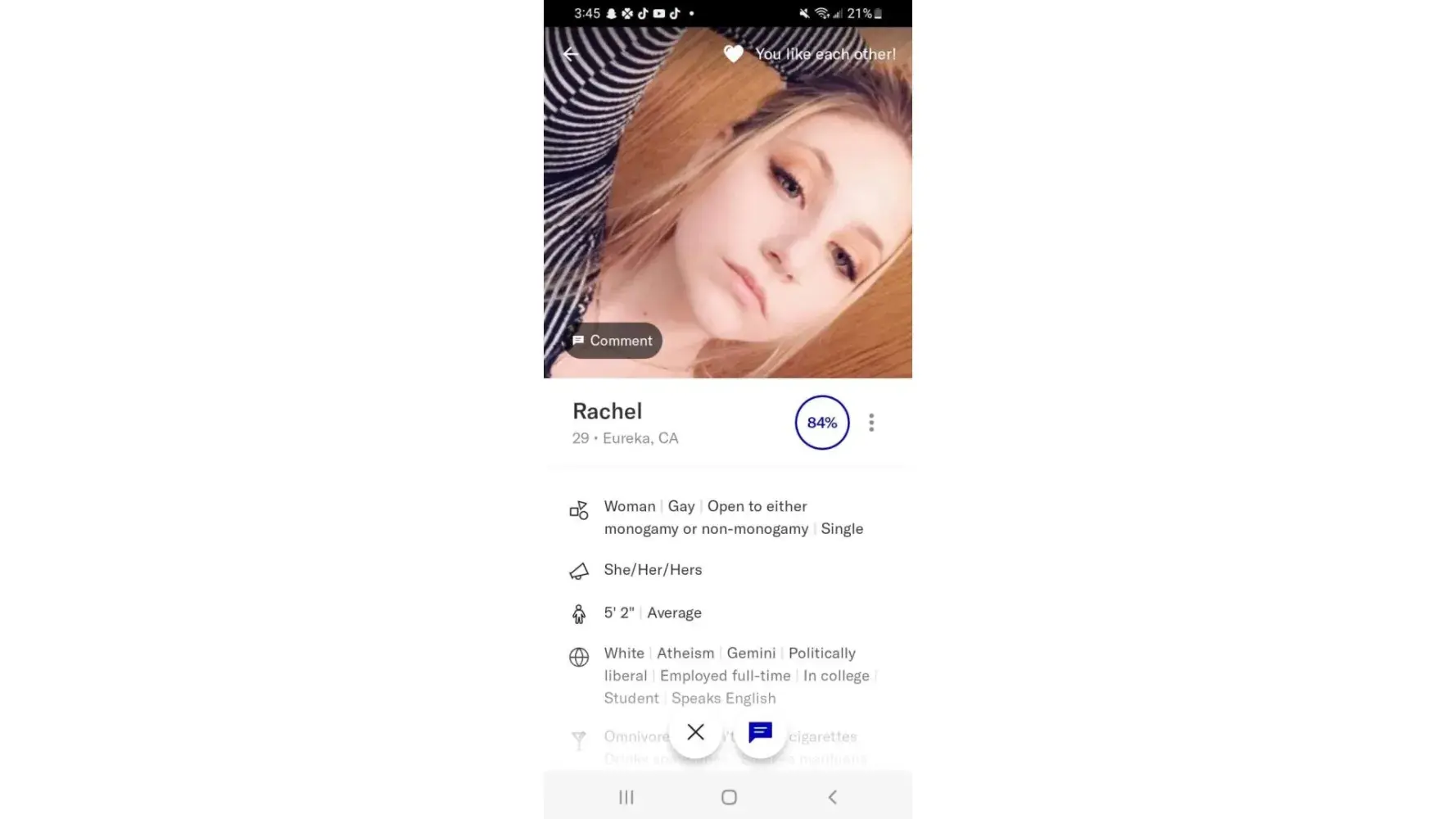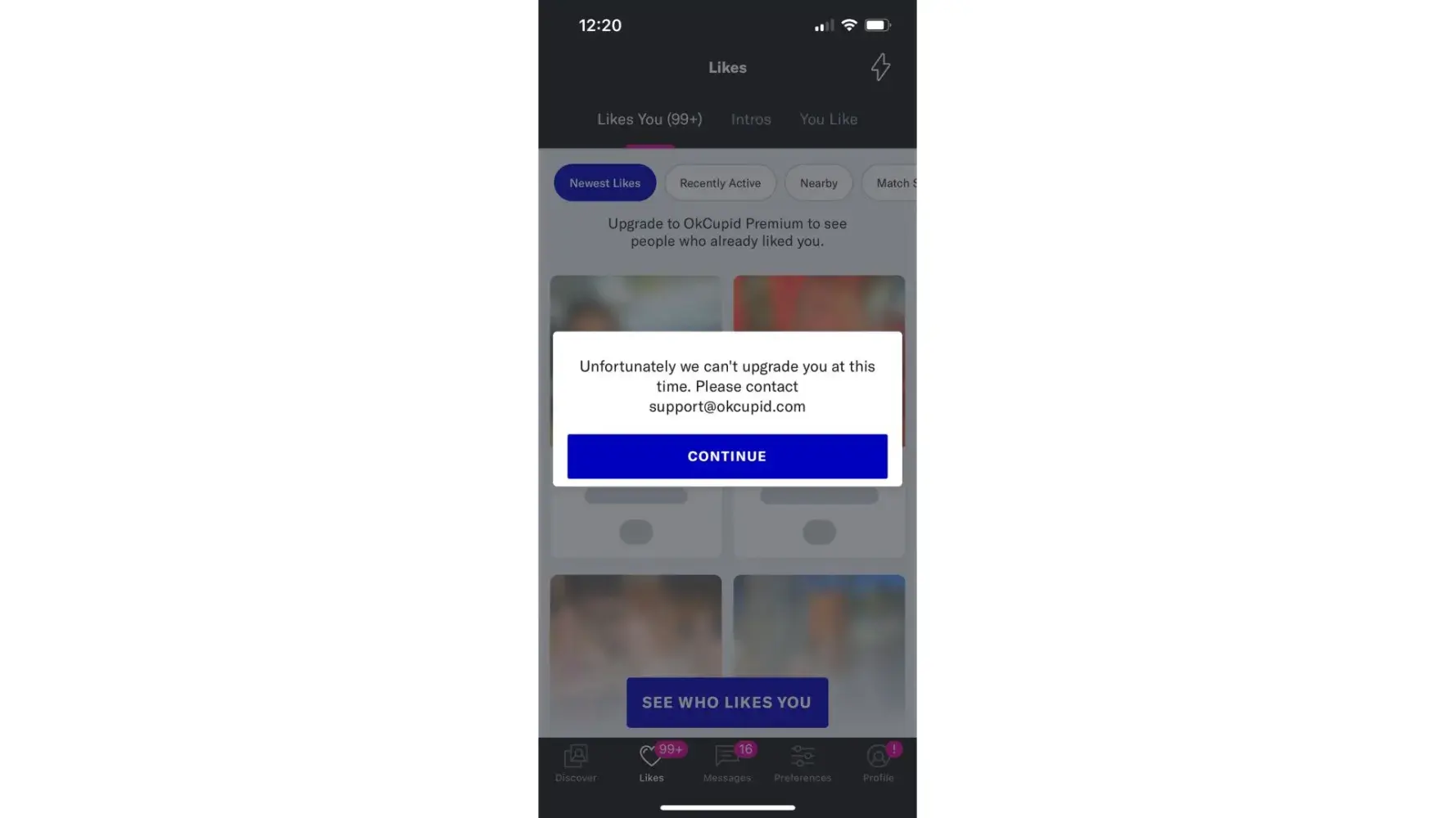 Desired outcome: Message: "I don't see likes" So I must send a message right? But how? If I'm not right for their profile why show me?