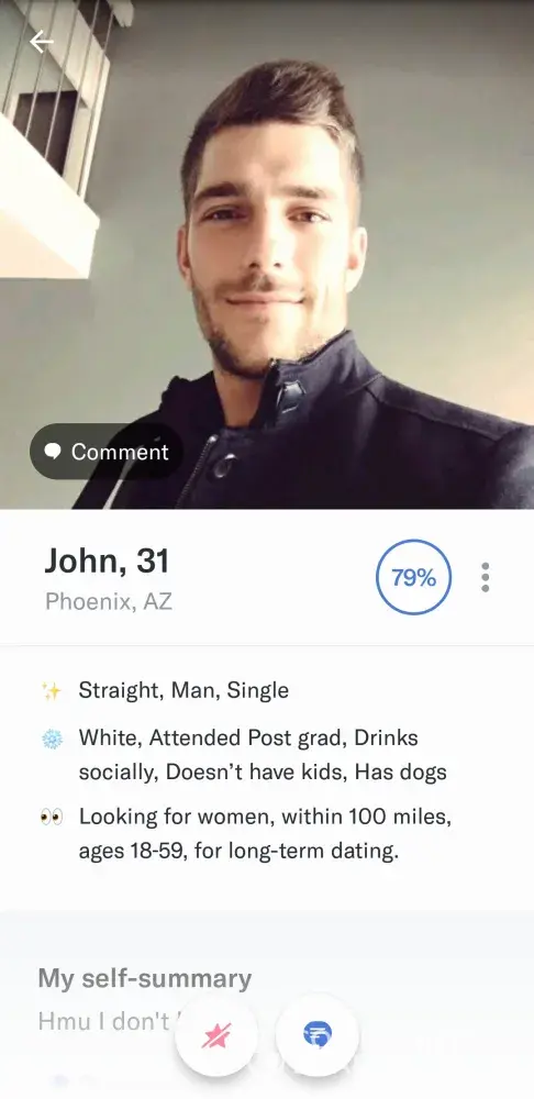 I have a screenshot of his profile, his name Enquirer, 5'10, 44 years, non smoker from London
