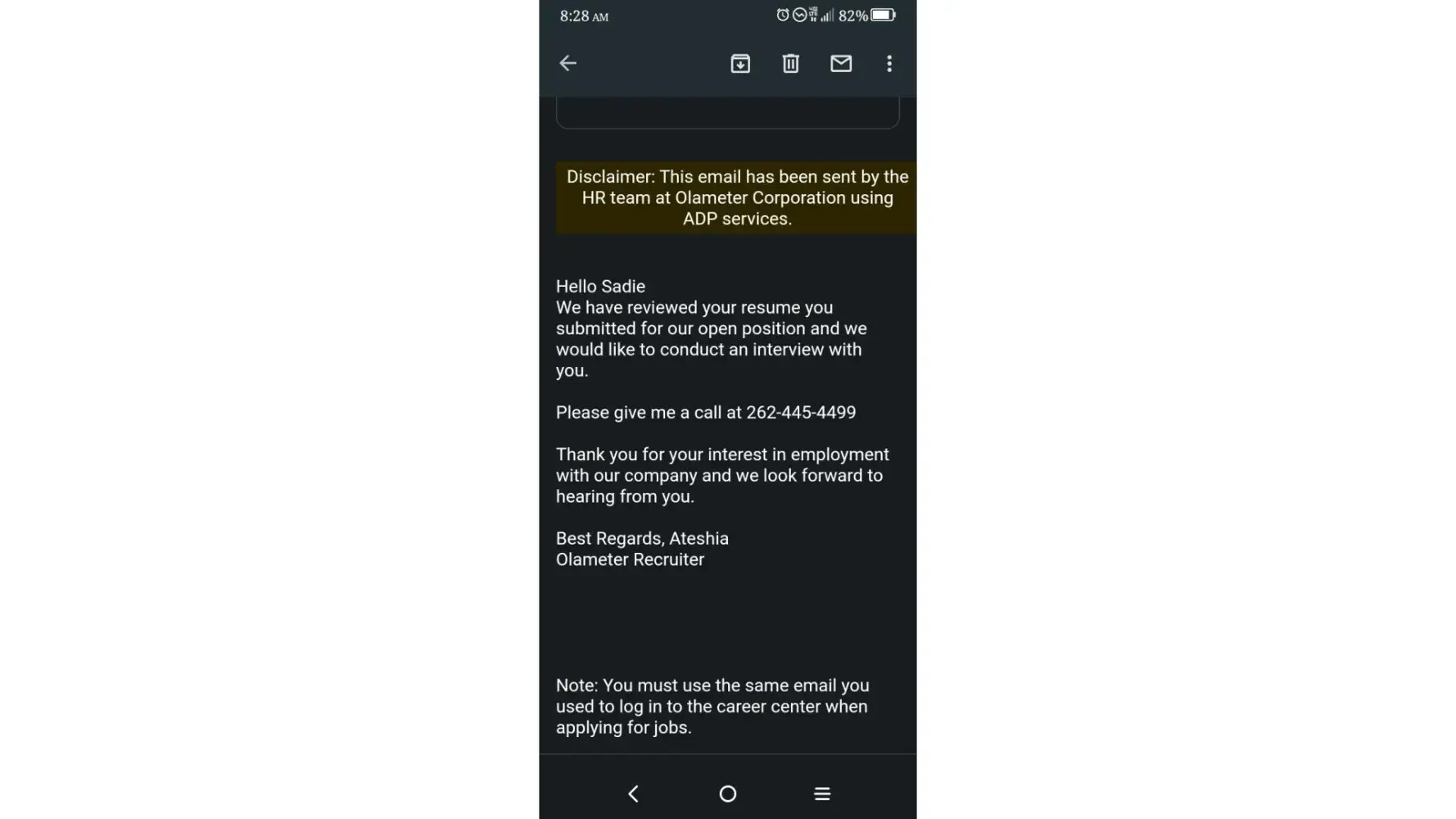 I received a text message and email from an Ateisha Ford 8 days ago to set up an interview, I have called the number she instructed me to and Olameter HR in order to reach her and I've received no type of return correspondence. This is very unprofessional in my opinion. Also, I received the email at 9:07pm and then the text message at 9:10pm. Also, unprofessional.