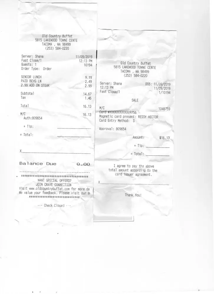 We visited Old Country Buffet in Lynnwood Washington today, on SW 200th Street. We were VERY offended when the bus person came to our table and took the cup of hot tea that my wife was drinking right out of her hands, she also took my half full glass of milk, She told us that we should have paid extra for our drinks. We were NOT informed at the cash register that drinks were extra. We would have paid extra if we were informed about this hidden charge. GOOD customer service would have been, "Please remember to pay for your drinks next time, I'll let you finish your drinks this time, enjoy your meal"... This was VERY RUDE... There are plenty more restaurants in the area who care about their customers and customer satisfaction...