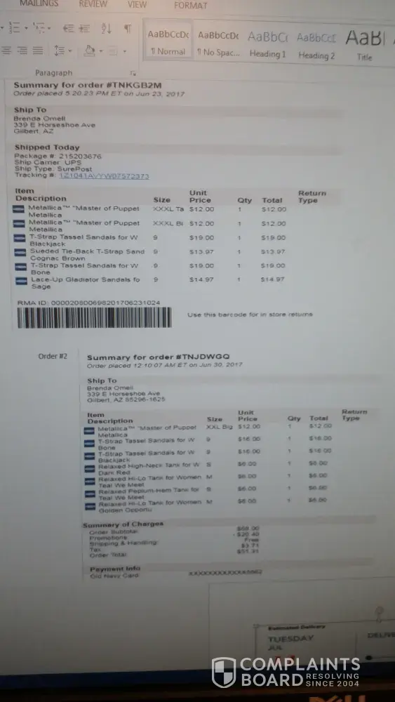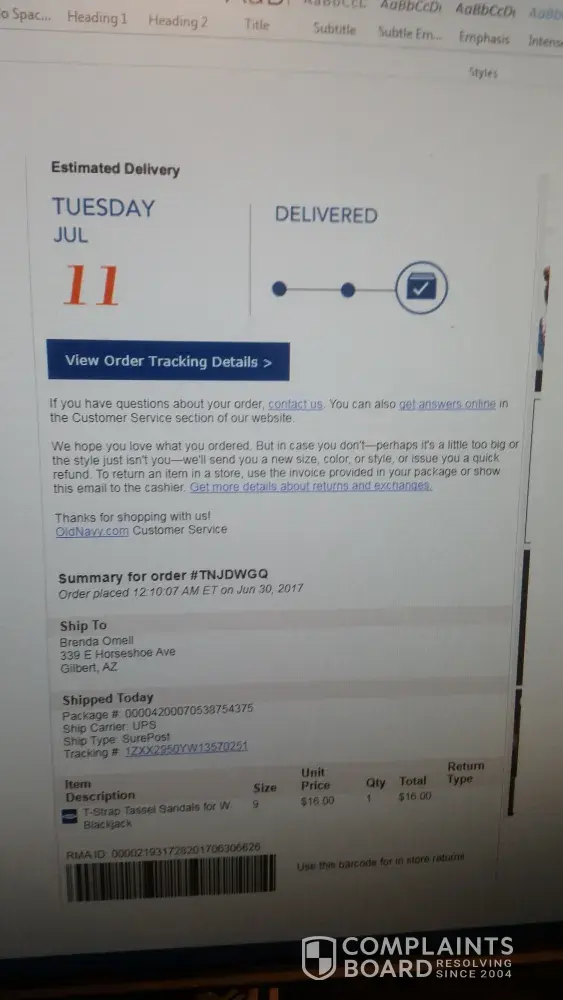 September 23, 2017 oldnavy.com order # TN38VSS