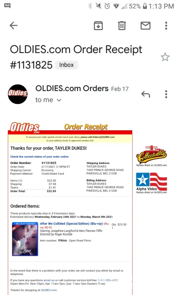 Overall, my experience with OLDIES.com was not the best. While I am happy that my order eventually arrived, the customer service I received was lacking. I hope that they can improve in the future and provide better communication and support to their customers.