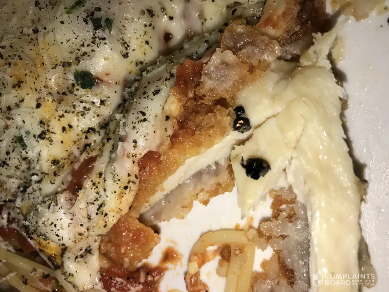 I went to olive garden last night which I dreaded in the first place. I haven't been in years because I have gotten sick from their food. My girlfriend wanted to get salad so I figured I would give it a try because it has been almost 3 years. I ordered the salad along with the chicken parm. The food came and about halfway in a cut into the chicken and realized I cut a beetle in half that was embedded inside of the chicken. I immediately called management and showed them what I had found in my food. I was very disgusted and disappointed. Please see the attached photos and hopefully the video will upload.
