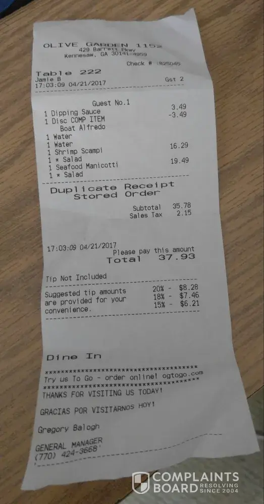 Olive Garden Complaints Page 46 of 56