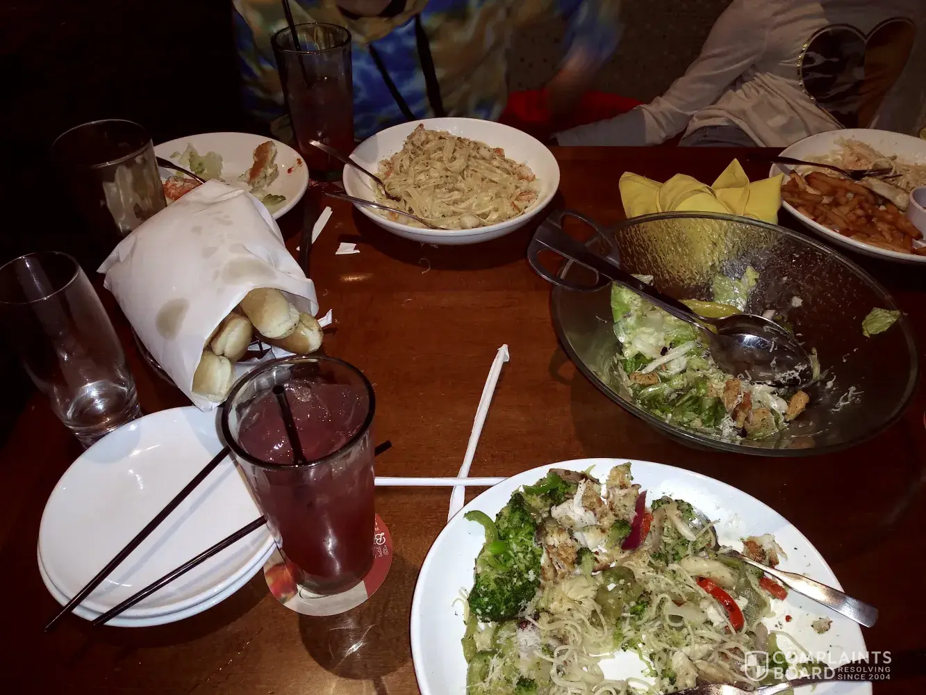 I ordered shrimp and scallops alfredo the bread sticks were hard and my food tasted old the sauce was dry I like olive garden but I was disappointed today plus I live almost an hour from that location.