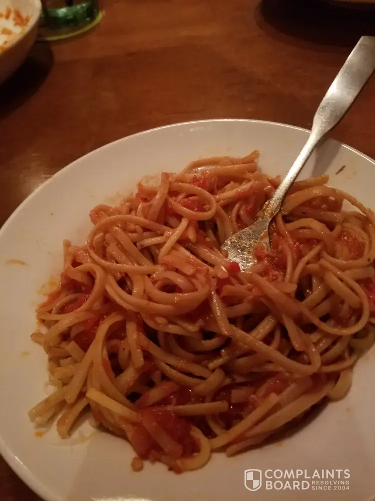 It's a 25 mile round trip to the Olive Garden in Blue Springs MO for my husband and I. Past experience has been great. We get Spaghetti and Meatballs with meat sauce. It has always been delightful in past experiences. But not on the evening. Got home with spaghetti noodles and meatballs. That's it. No sauce what so ever. Called manager explained. He offered to send a 25.00 gift card. OK, sounds reasonable. Been waiting 3 weeks. I doubt it's coming. I don't go back to places that don't take customer service seriously. I have been in the service industry for over 30 yrs. I always treat as I want to be treated. Let's see how this is handled. I will keep you updated. Thank You.