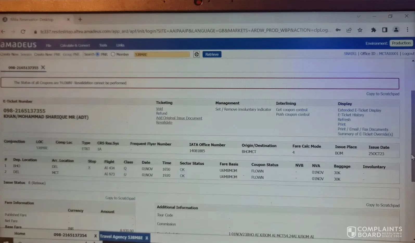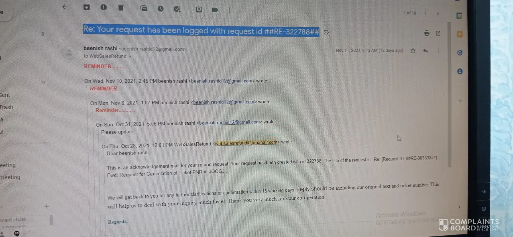 Oman Air Ticket Refund, Pending over ONE YEAR -