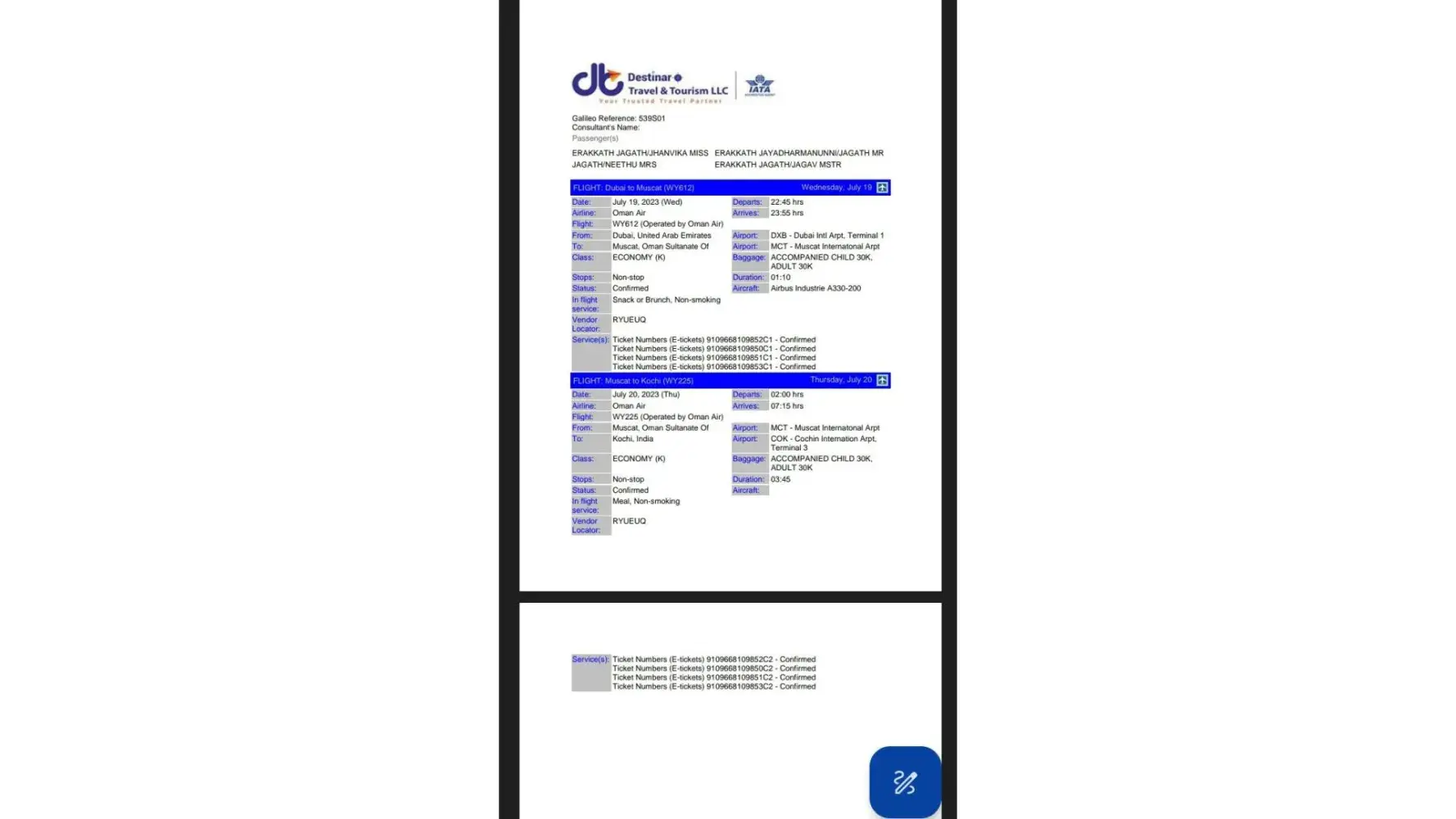 My family (03 Adults) were to fly CMB-MCT-JED and return DAMMAM/MCT/CMB, under the following ticket numbers