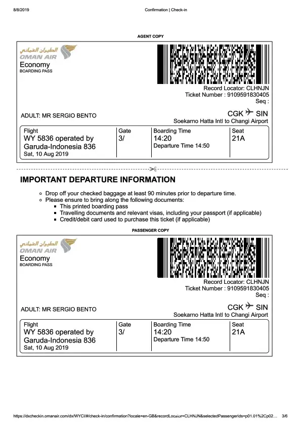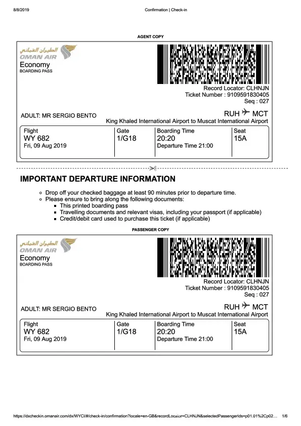 my first ticket was on Saturday 14 September 2019 WY 434- Oman Air