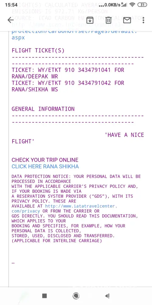 ref code ciyysw ticket no [protected] and because I was in lahore( Pakistan) so I bought a ticket from lahore ref AYWMGR(WY) TICKET NO [protected].