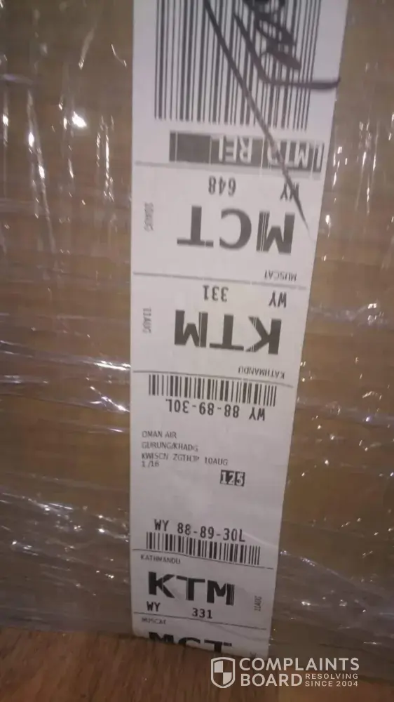 missed to board the plane due to cargo (sony tv) misplaced by oman air staff