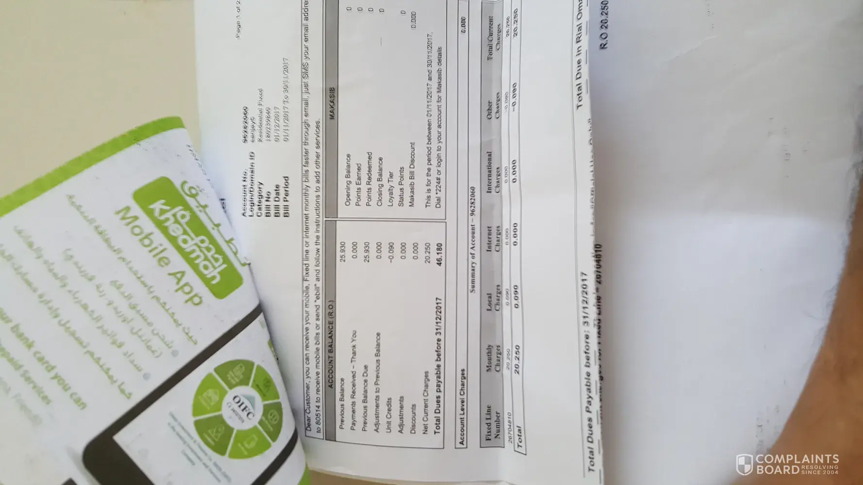 Now before Eid holiday I approached the outlet to check but they were not in a position to answer me. I requested to check my balance and I am surprised to see that it was showing RO 45.00 which is very unfair to me and I am not responsible for the wrong billing.