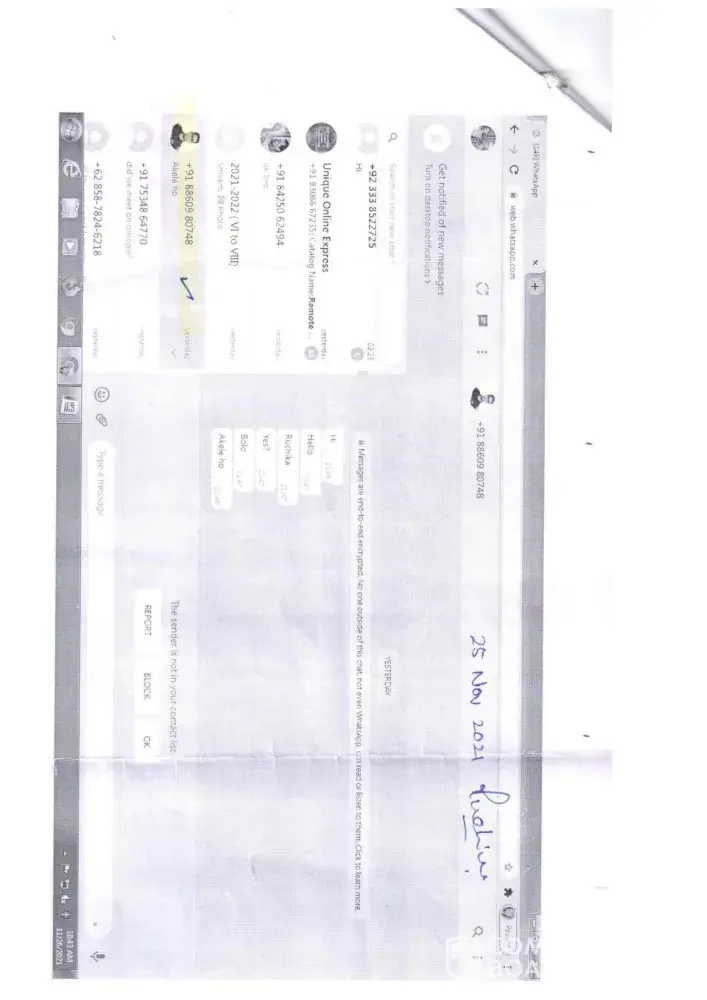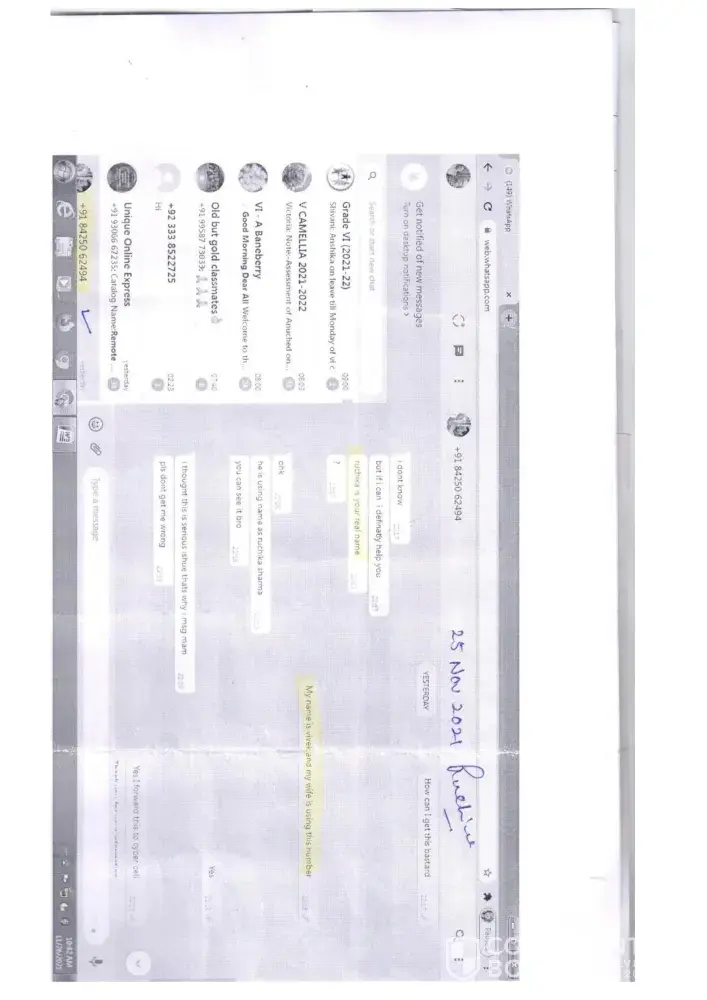 investigating a case registered in cyber police station ambala INDIA CC no 5955 PW dated 26.11.2021 office of the Supdt of Police Ambala the comp Ruchika Sharma.