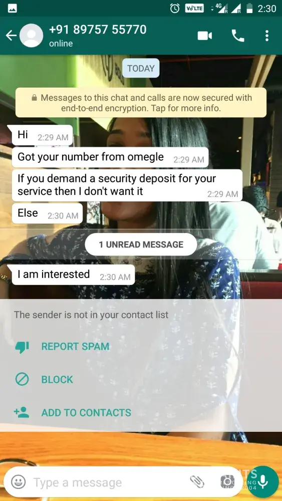 hi, i have received a whatsapp chat message from an Indian guy who claims i have chatted with him online on Omegle, which i have not. then he he has sent me a screen shot of the chat on Omegle and fair enough those are my details. attached please find chat screen shot. please check and let me know details of the person who is chatting and using my personal details.