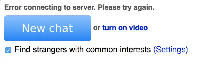 Hello, I'm writing to keep you updated about Omegle's server connection when we're on the interests section. Once clicked on it and typed the favorite interest as a tag, this announcement appears : " Error connecting to the server, please try again" and after that won't allow the operation of this website.I really hope you'll fix all of it and i'm looking forward to a reply back of yours as soon possible as.