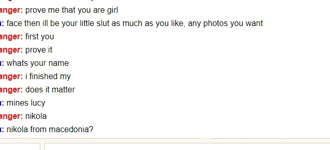 This person wanted to see photos of a naked 14 year old girl and have intercourse with her, i've submitted a police report and got the photos, I posed as one with the camera off and he displayed distressing signs of being a paedophile, his name is nikola from macedonia, I want this noted and sorted because people shouldn't be allowed to get away with it.