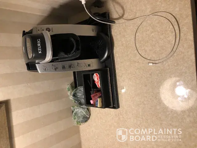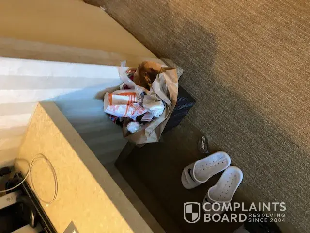 Then once they got to their room to eat and watch tv 3 workers knocked and stood outside the door. A women a man and a security guy, and told them they were getting a noise complaint and they will get evicted if it continues.