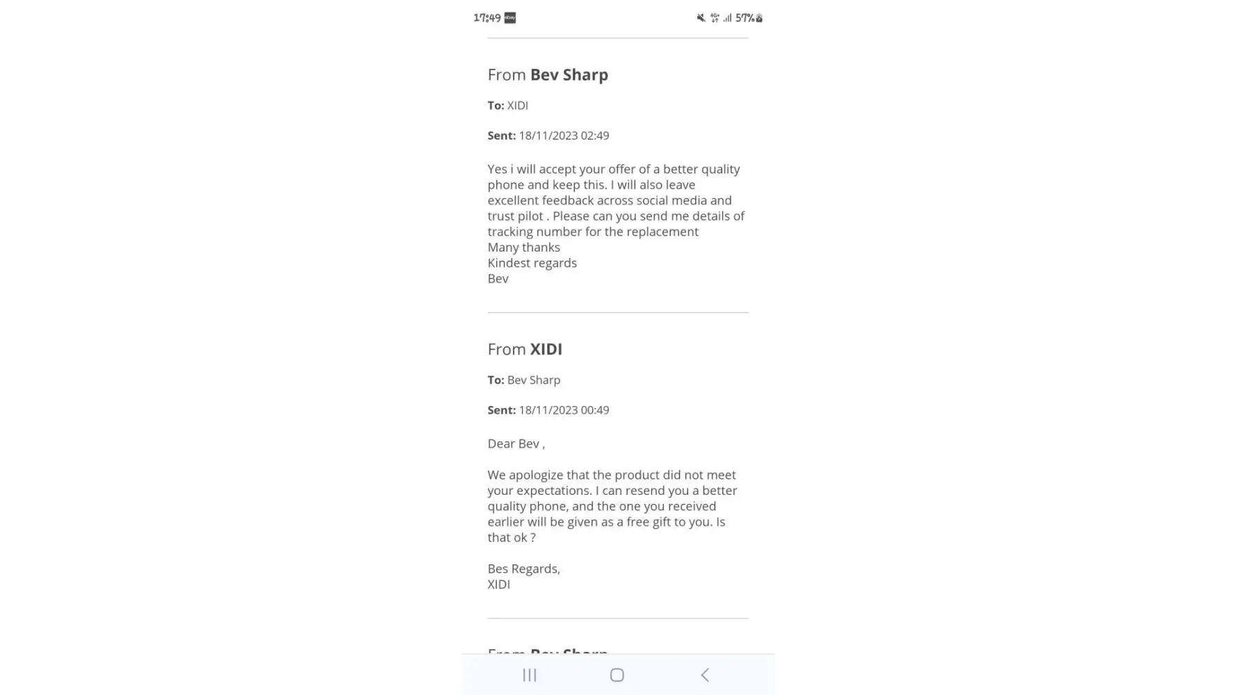 I ordered a mobile phone that arrived on 17th November 2023 under evri tracking number H03JZA0035622101.