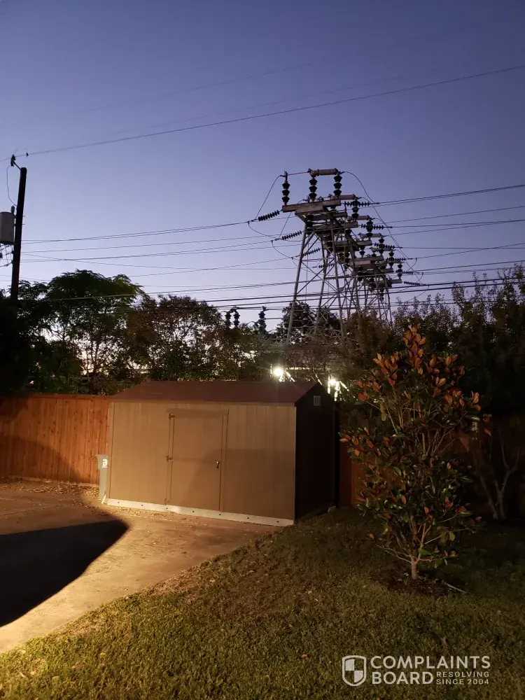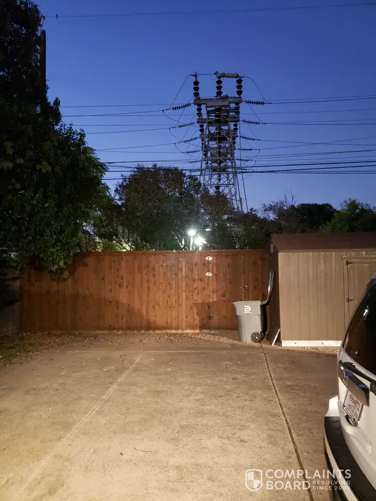 I just came home to find Oncor has installed Lighting in the substation behind my home, The lighting is shining into my back windows and back yard. I need the lighting lowered or taken down. This is devalued my property. The lighting dose not have to be a steet light nor dose it need to shine in my yard. Please have this take care of this week, October 22, 2019 installed This complaint being made the same day