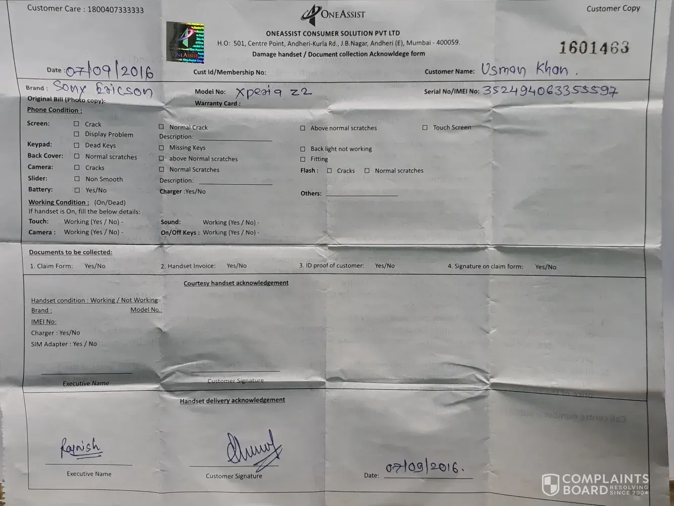 Service request number 1532482, my membership no. - [protected], registered date - 13 august 2016, expiry date- 12 august 2017, i have claimed on 31 august 2016 that my sony xperia z2 mobile is in damage condition after that on 07 sep 2016 they called and arranged the pickup mobile handset and i handed over to their pickup boy the damaged handset. After 1 month they replied me that my mobile damage doesnt come in national insurance company damage criteria. After that i called the oneassist they said that your unrepair handset will be delivered to you within 7 to 10 days from date 3 oct 2016. But till date their is no reply or any commentment from their side. And now they refuse to hand over my handset to me they are again saying on 13 oct 2016 that your handset will take 10 days to deliver, every time they say only that your handset will be delivered but they dont deliver and they dont issued to me courtesy handset to operate against my handset which i have handover for repairing to one assist on 7 oct 2016 this is a fraud company which is cheating customers 2 months back i have given my for repair, i don't have any response. Worst service never seen in my life making customers to loss patience. If anyone know where we can raise complaint on this one assist please let me know like we raise in consumer court. Till date 07 nov 2016, they refuse to return my handset and saying that it will take more than 10 days to handover.