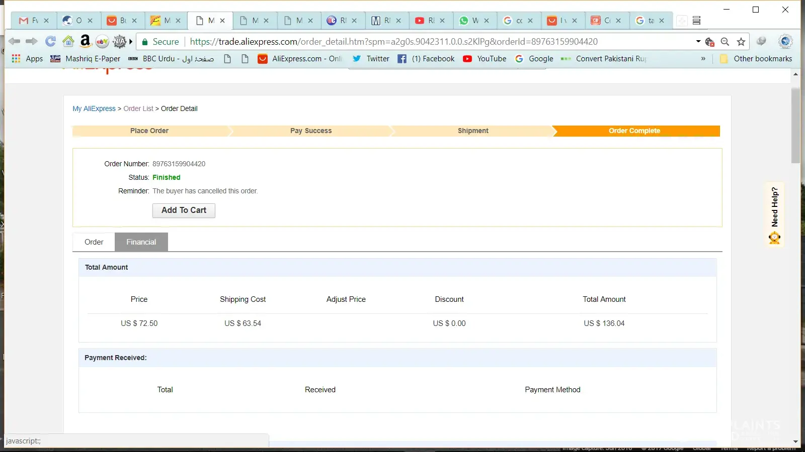Order Number: [protected] Dated: 12th February 2018 Seller Store Number: 1724883 I booked 25+25 pieces of male/female connectors of DB15. Order was confirmed after money transaction. Next day I asked them to cancel the order and refund the amount. Reason was that I placed 2 orders of same item with same company due to net problem. Second order number...