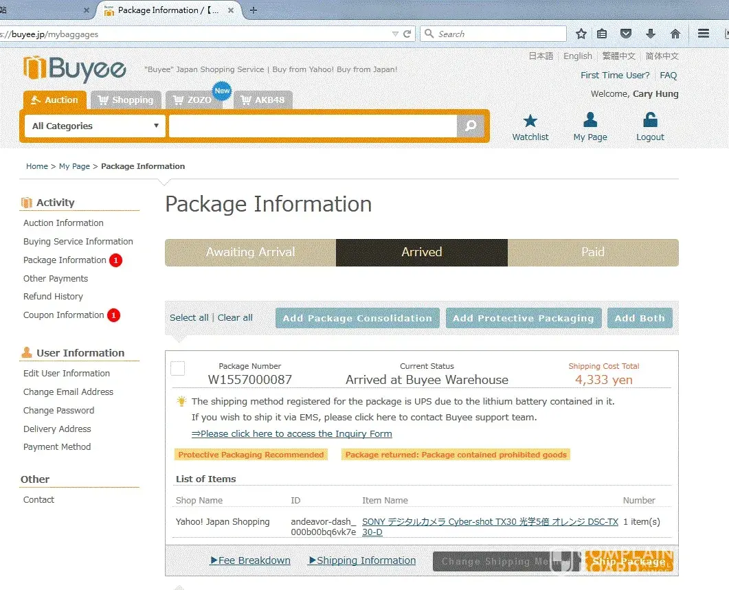 Read full complaint and 1 commentBuyee.jp - SONY camera
