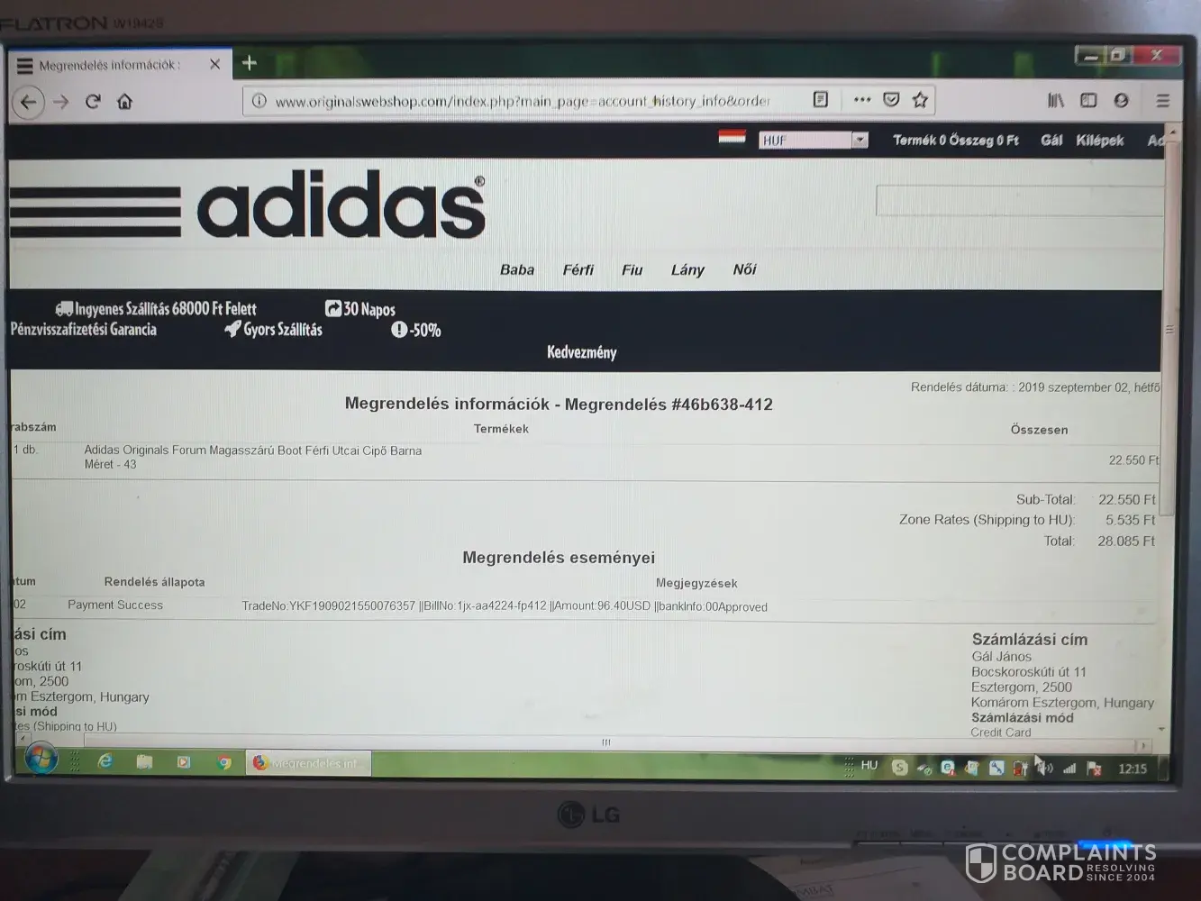 On september 2, 2019, I ordered an adidas originals forum high top brown boot men's street shoes from originals webshop.com and a low quality white plastic shoe was posted. Ther was no contact on the site, no phone or email adress. I attach photos of the site and a photo of the shoe I sent to me. I'd like to get my money or my original adidas shoes
