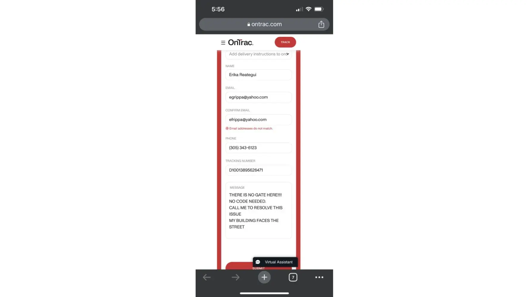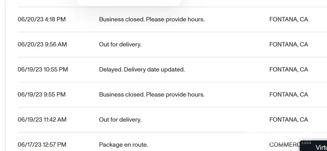 Trac Fontana, California claims that has attempted to deliver my package but that the office is closed. Twice I have sent them the hours the office is open to deliver my package. I also have asked them to call me at my phone when they arrive to Perris so I can meet the delivery driver in person if they find the place closed. I can provide my ID. In spite that I twice gave them the hours the physical address is open they continue posting in the tracking that the place was closed. Not true. It was open all day today. I went to pick up my mail.