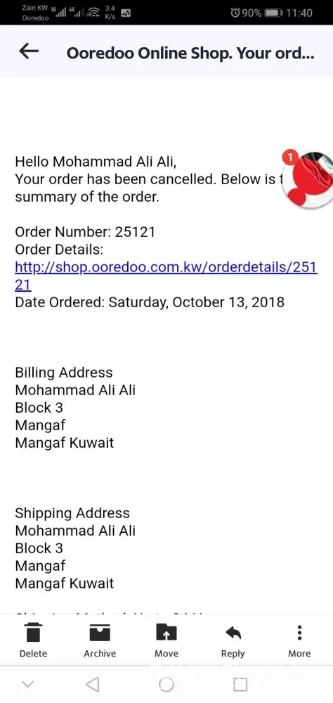 dear sir my name is Mohammad ali i am percheg ooredoo online crevice i pad mini celuler 128 gb last 13/oct/2018 but i am not recive till now and 23 kd i am pad but that time seller told me this product not a bailable you can buy another product, but i am not interested other product that time tell me after few days wite than i am wetting but now no body help me i am calling 301 but no body talk good only tal me your order now cancel ok i am accept my order cancel right but my money replace me in my accounts but no whu 23kd why you cut in my account if you no stock same product why take mony, ok give me my money in my account please.