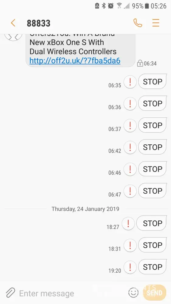 I saw an advertisement on instagram which stated that it was from the zara clothing brand, upon clicking on this link I soon realised that this was not zara but a scam! I received a text from the number 88833 with an option to reply with stop in order for these messages to stop being sent as they are charged at £1.25 per message. I immediately sent a message back stating stop to this number but the message failed to be sent. I have now done this a total of 8 times always with the same reply. I have contacted o2 who have advised that they will look into this matter for me as there is nothing on my account to stop the messages being sent. I have blocked the number on my mobile account as soon as I realised that this was a scam but yet the messages are still being sent to my mobile and charges are still being applied. I need you to stop sending these messages as I have replied stop on 8 occasions. These charges need to be refunded to my mobile account with immediate effect. I have also contact ted o2 and they have advised that they will contact this company also on my behalf.