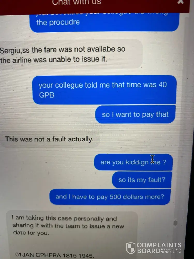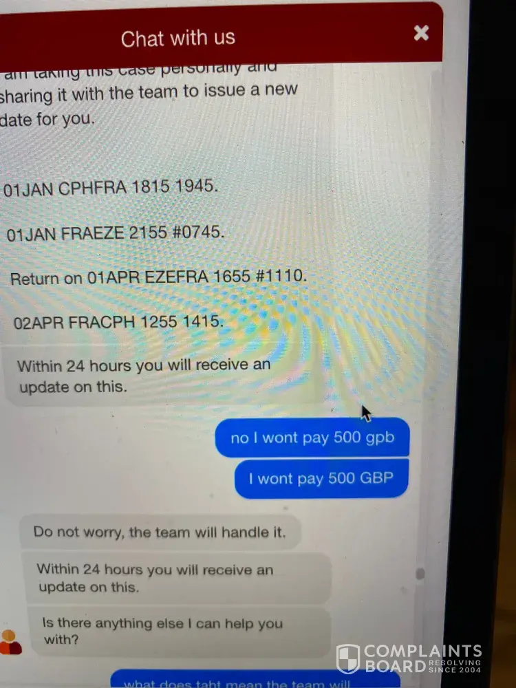 holiday and flights I paid for, and I have already lost a significant amount to charges. I have referred my