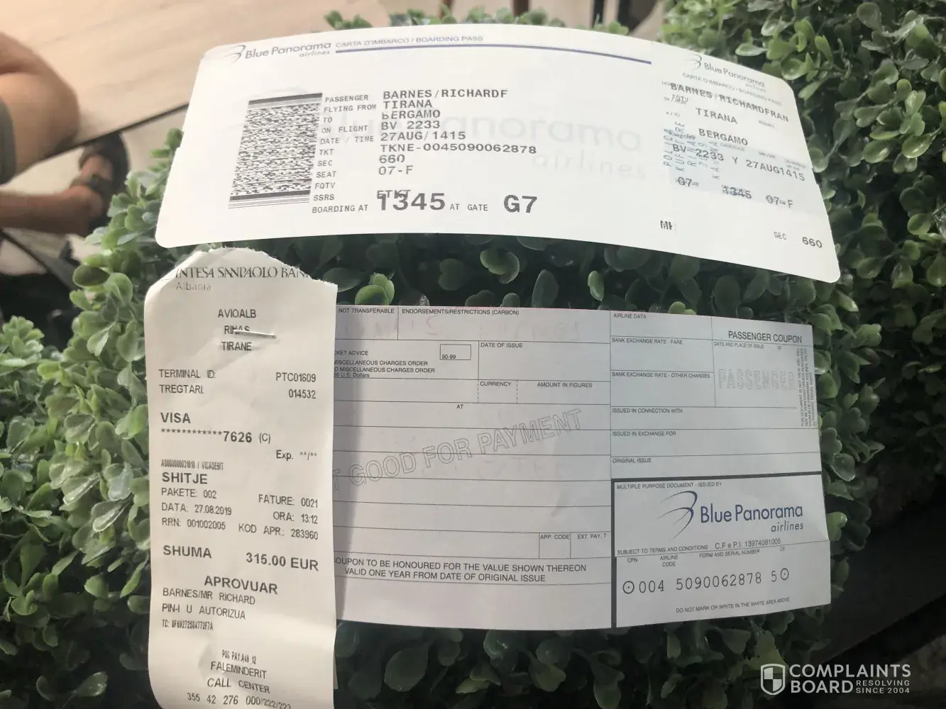 Booked a flight from Tirana to Bergamo for 27th of August. This was part of a onward connecting flight to Bristol from Milan. The flight from Tirana was booked with Blue Panorama. The flight from Milan was booked with Ryanair. I checked in normally with Ryanair and after attempting to check in with Blue Panorama was told I had to check in at the airport. I had done before and so thought nothing of it. When I attempted to check in at the airport I was told by Blue Panorama employees that I had to buy another ticket because my booking did not include my my MIDDLE name. At no point throughout the booking was I made aware that my details were incorrect or that I needed to enter my middle name. If I had been notified I would have changed it. I have confirmation emails from Odopo and Blue Panorama, the Blue Panorama email having been sent on the morning of my flight. I no email did it mention that I had to alter any details. In fact the Blue Panorama states that my tickets had been issued. So why then should I have to pay an extra €315 for a flight I had confirmations for? If Opodo knew this details was crucial they should have informed me. If Blue Panorama knew they should have informed me. At no point did anybody mention this detail. In fact an employee working at Tirana airport mentioned that they'd only brought the rule in in June. Why wasn't I or anyone else in my situation informed? Instead I get mugged at the airport.