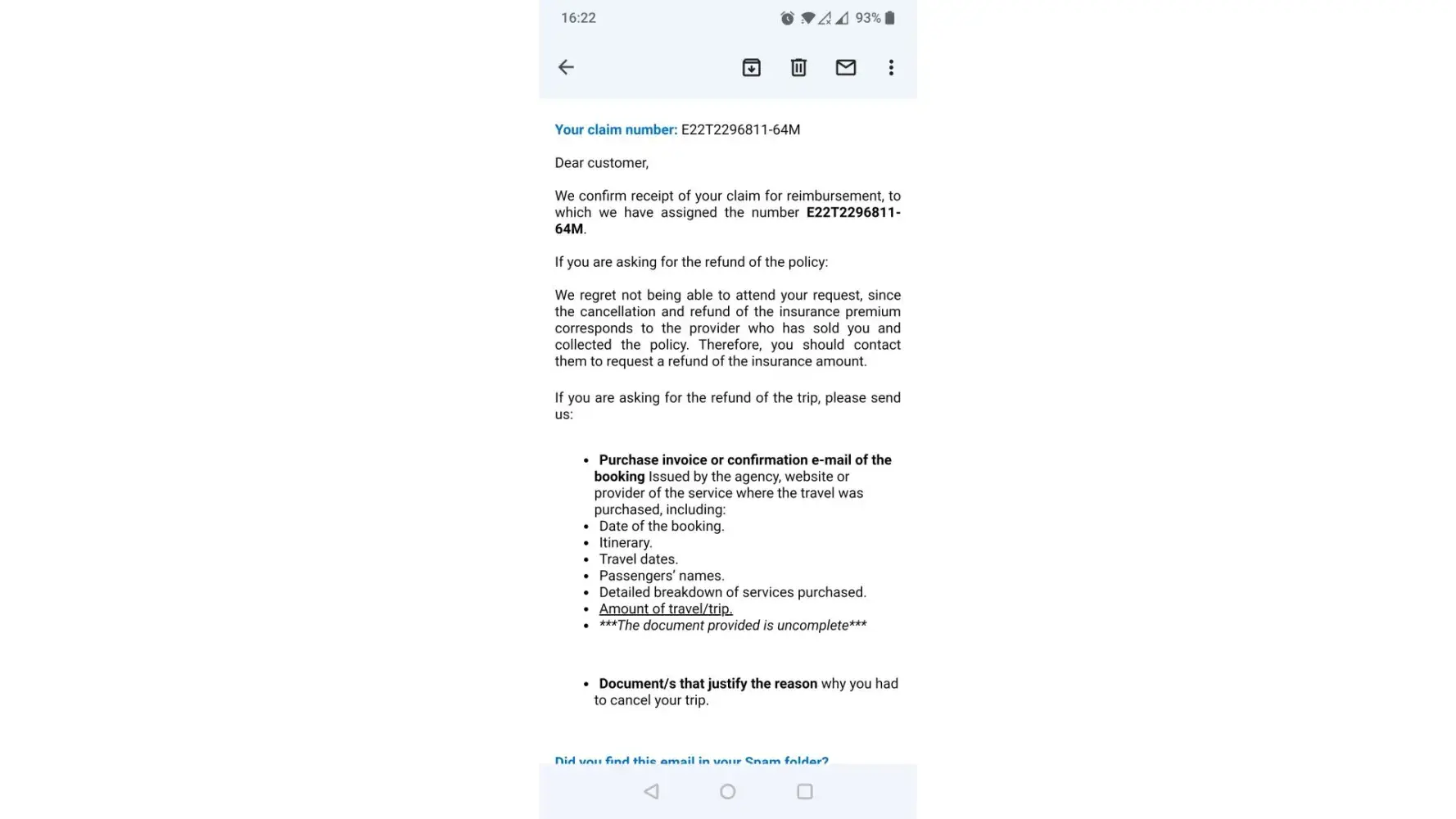 I have given up trying to claim back over £800 of associated expenses (transfers and airport parking).