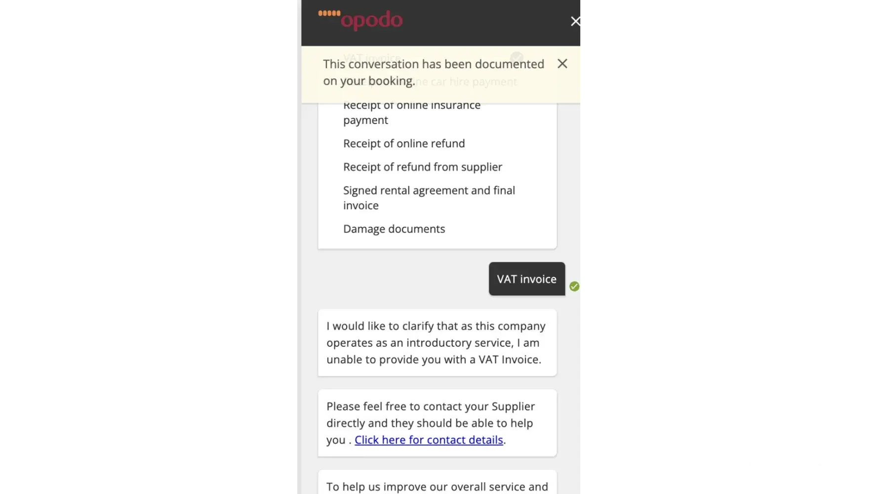 I rented a car through Opodo for my Business trip and they are refusing to issue an invoice, telling me toi contact the supplier directly. I've been back and forth with the supplier (ok Mobility) and they tell me to contact the provider (Opodo). I just need an Invoice and in my opinion I have the right to receive it!"!