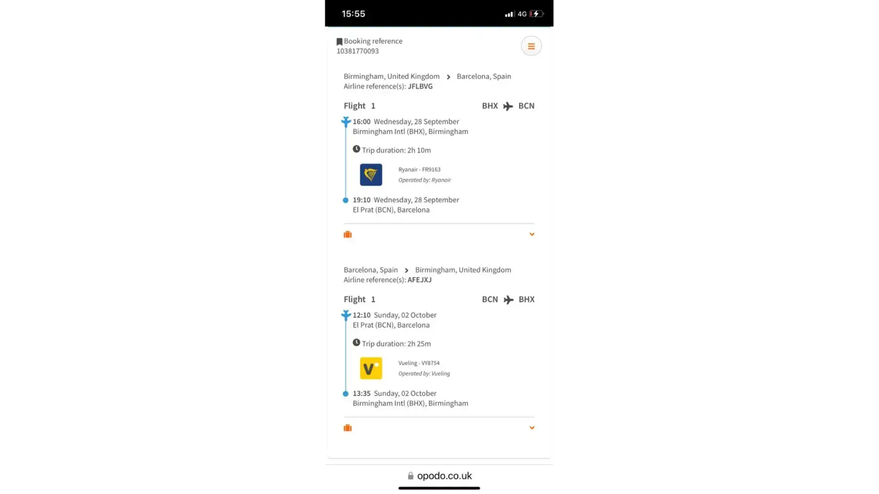 Opodo booking reference: [protected] - Airline booking reference: SF6E5G