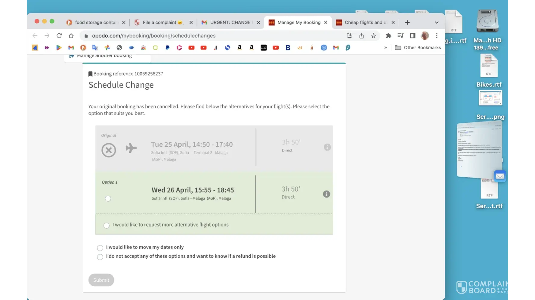 I believe that I have told everything that is required for the consideration of the complaint. I'm still waiting for a response from the OPODO. And I agree to an alternative flight.