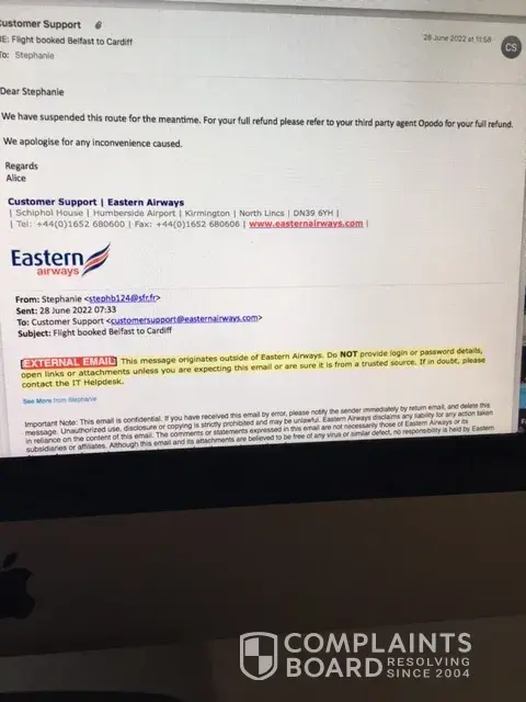 I paid Opodo for 3 flights with Qatar (Gatwick to Doha, Doha to Johannesburg & Johannesburg to Port Elizabeth) The airline cancelled the final leg of the flight from Johannesburg to Port Elizabeth on 09/06/22 my flight was on 13/07/22