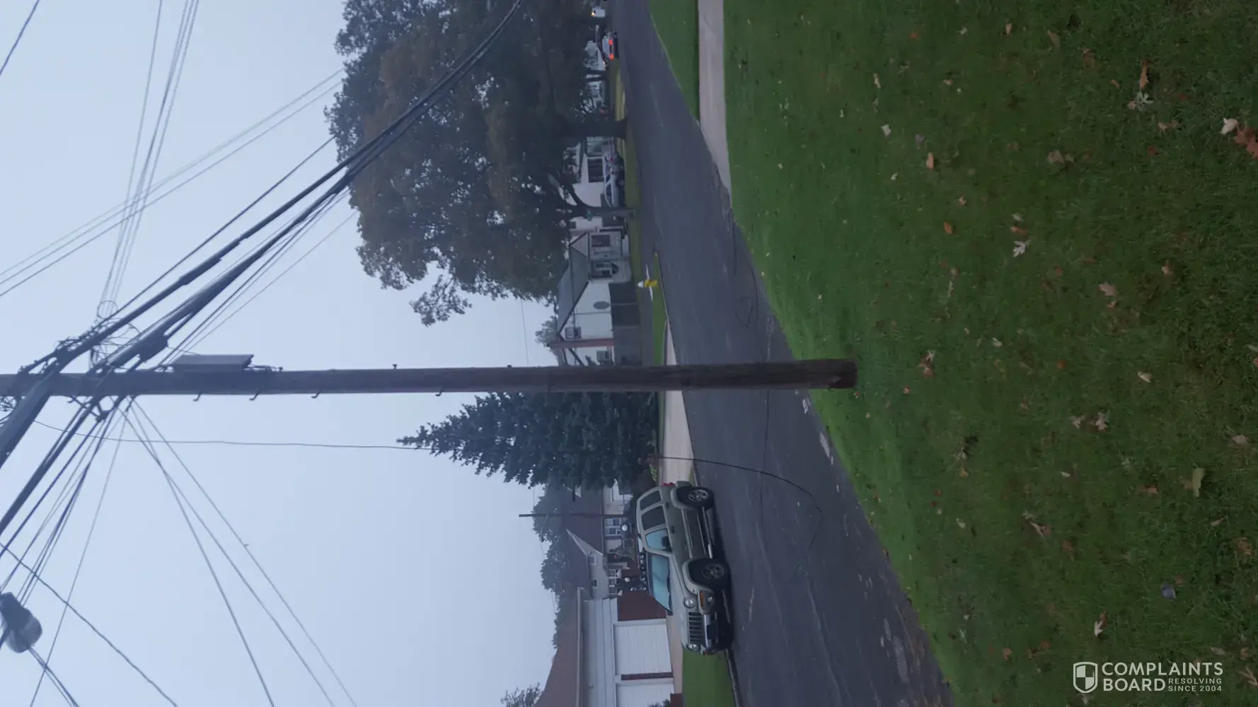 wire left hanging from pole on front lawn