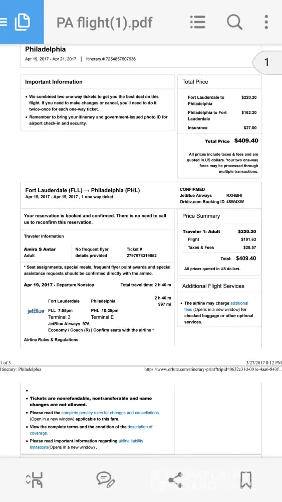 I have a complaint about Orbitz booking, Itinerary #[protected].