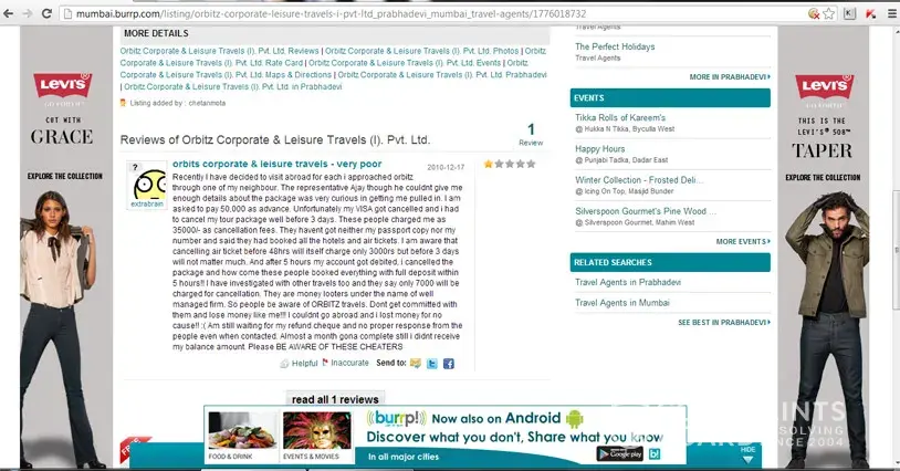 After the unfortunate incident we searched the internet and came across a host of frauds committed by Orbitz Corporate & Leisure Travels (I) Pvt. Ltd.