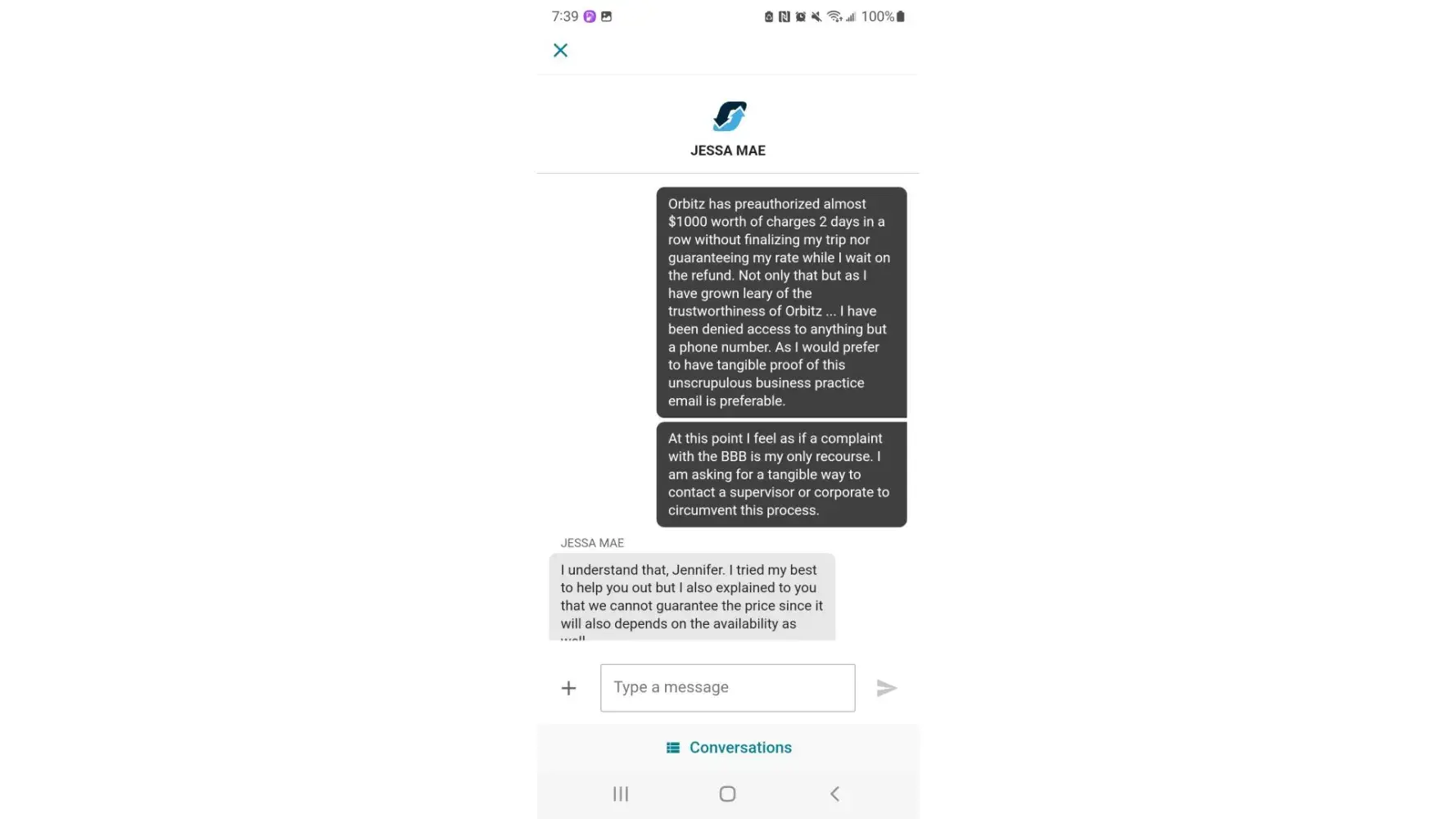 For 2 days in a row I have attempted to book a trip via Orbitz as I have done for many years. However, this time Orbitz has pre-authorized almost $1000 in charges without verifying an itinerary. After reaching out to customer service I was told I should have guaranteed with the airline that there was enough seating before I submitted my payment. Mind you my reservations were only for 2 people and I've never had to do that before when using Orbitz. I asked for a rate guarantee while I waited on the release of my funds and was told the only way to guarantee the rate was to rebook immediately... which I foolishly did... only to have the same thing happen. I was denied tangible access to a supervisor or a corporate email address. There is also no way to leave a review on Google or the Orbitz website. I did however take screenshots of all of the correspondence as well as file a complaint with the Better Business Bureau.