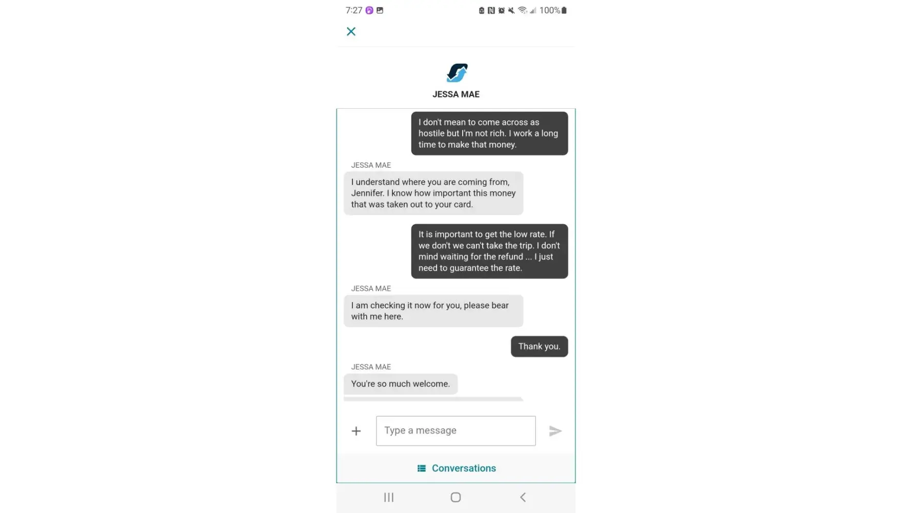 I spent two hours on the phone with someone to change my flight since the airline cancelled the return flight. It took the lady two hours to find a trip and change it. She failed to mention until AFTER charging my card the difference that there would be an $100 fee. I dont understand how I paid $163 for a flight and it ended up costing me $400 to change it later.