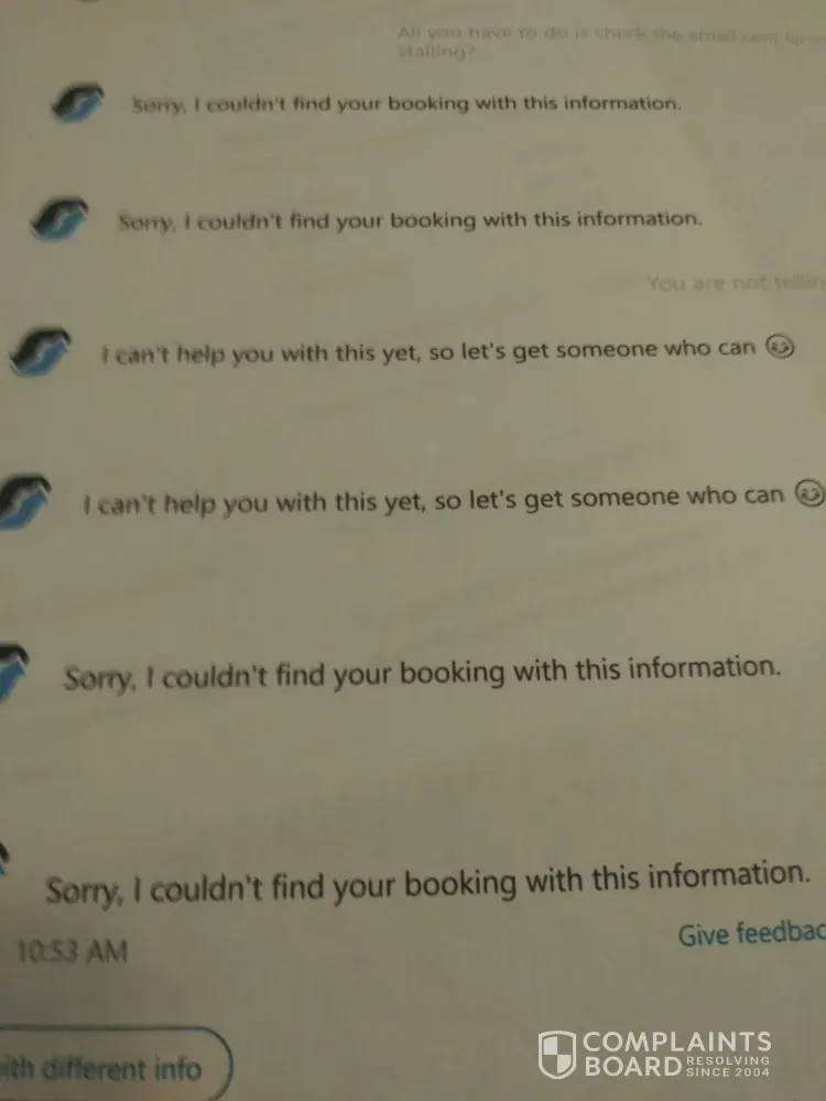 Your virtual agent Saira on 16Sep21, wasted 1 hour and 50 minutes of my time and used many excuses. Please review the text message feed for the day of 16 September 2021 for Santiago Rivas, [protected]@yahoo.com. Your agent was slow, at times did not understand me and was not asking the right questions nor giving options. I understand there might be technical issues but in this instance I clearly saw a disconnect. Maybe due to a language barrier or inept service workers or customer service training. I will absorb the costs and will never use your travel platform again.