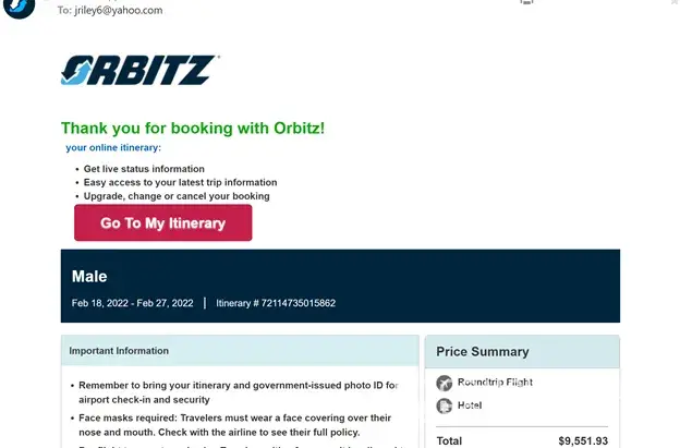 Orbitz Itinerary [protected]