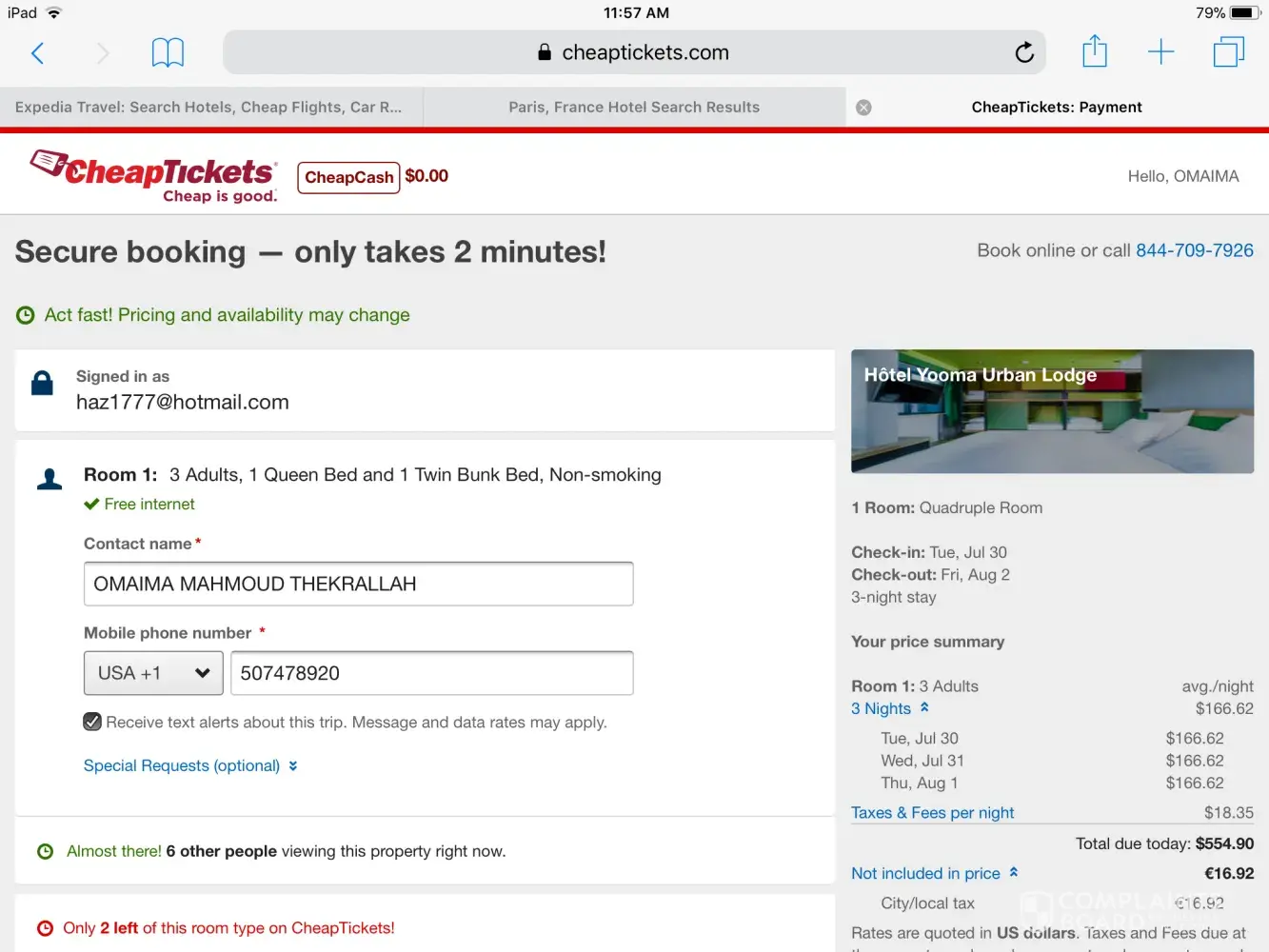 I reserved 3 tickets for my family like I always do using your website .