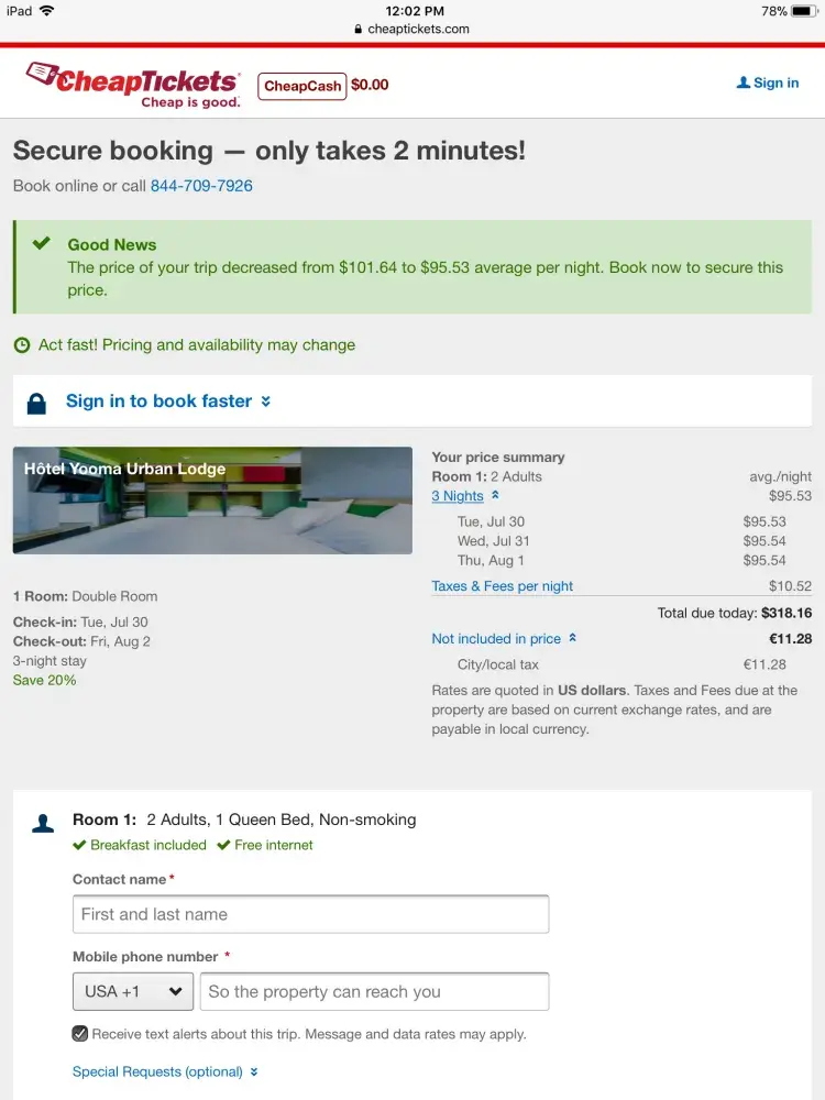 Checking rates for a hotel, I was led into a multi-level bait and switch operation. They quoted rates and then refused to let me use them. They offered coupon codes but no place to enter them. They promised no credit card required, and of course they required cc prepayment. They overcharged on Travel Insurance. Customer Care lied to me. And their Travel Insurance basically guaranteed you the room you just paid for...so they take your money for a so-called discount price and you have to pay extra to be certain they didn't rip you off. That's chutzpah!